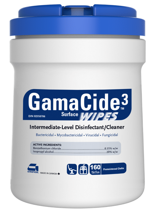 Available in 160 ct Cannisters, 160 ct refill pouches, 946 mL spray bottles, 4L & 10L bottles.